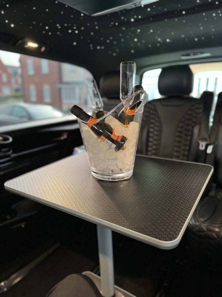 Enjoy a night out or a weekend away without the hassle of driving. Our minibus is ideal for group outings, providing a safe and luxurious ride for up to 8 passengers. The champagne table in the rear is available for no extra cost. Refreshments provided on all trips.